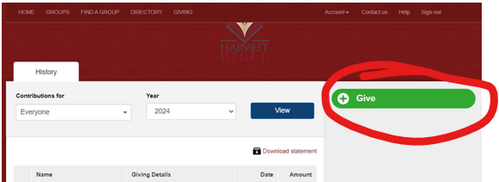 1. Go to our giving page: https://harvestbiblechurchcypress.snappages.site/Giving-New and scroll down to our new giving portal.