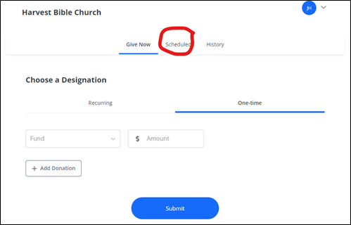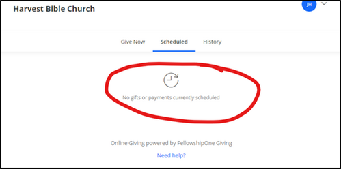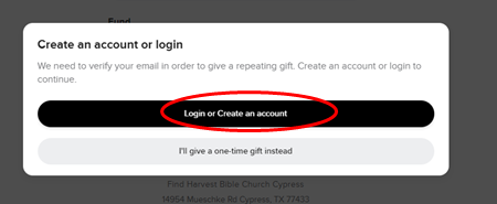 1. Go to our giving page: https://harvestbiblechurchcypress.snappages.site/Giving-New and scroll to the bottom of the page under “Attention Recurring Givers”